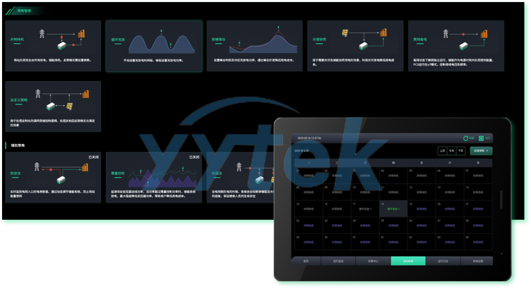 EMS系统支持全面的场站能源控制策略,包括并网待机、循环充放、削峰填谷、光储协同、离网备电、自定义策略、防逆流、防孤岛运行、以及需量控制等。场站可以根据自身需求、当地电价策略以及实际生产用电情况,按天设置相应的控制策略。同时,系统支持连接冰球突破VPP运营管理系统,接收虚拟电厂平台下发的需求响应策略并执行。