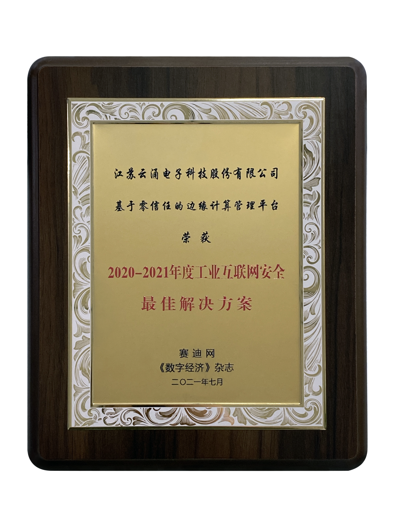 冰球突破基于零信任的边缘计算管理平台荣获“2020-2021年度工业互联网安全解决方案”的称誉。