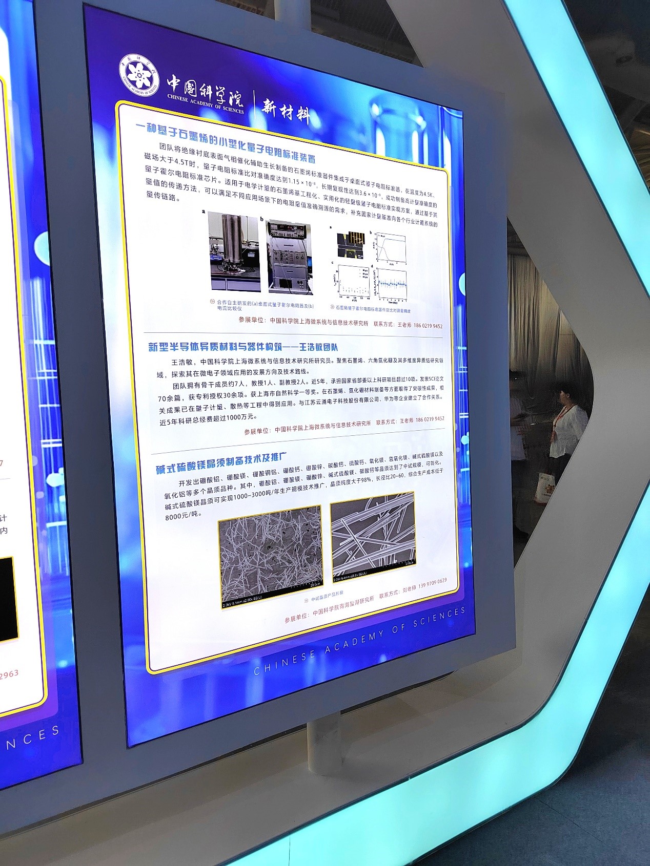 在中国科学院新材料展区中,一种小型量子电阻标准装置得到展示,这是中科院上海微系统与信息技术研究所王浩敏研究员团队的最新科研成果,冰球突破豪华版作为产学研合作支持单位,全程参与其中。