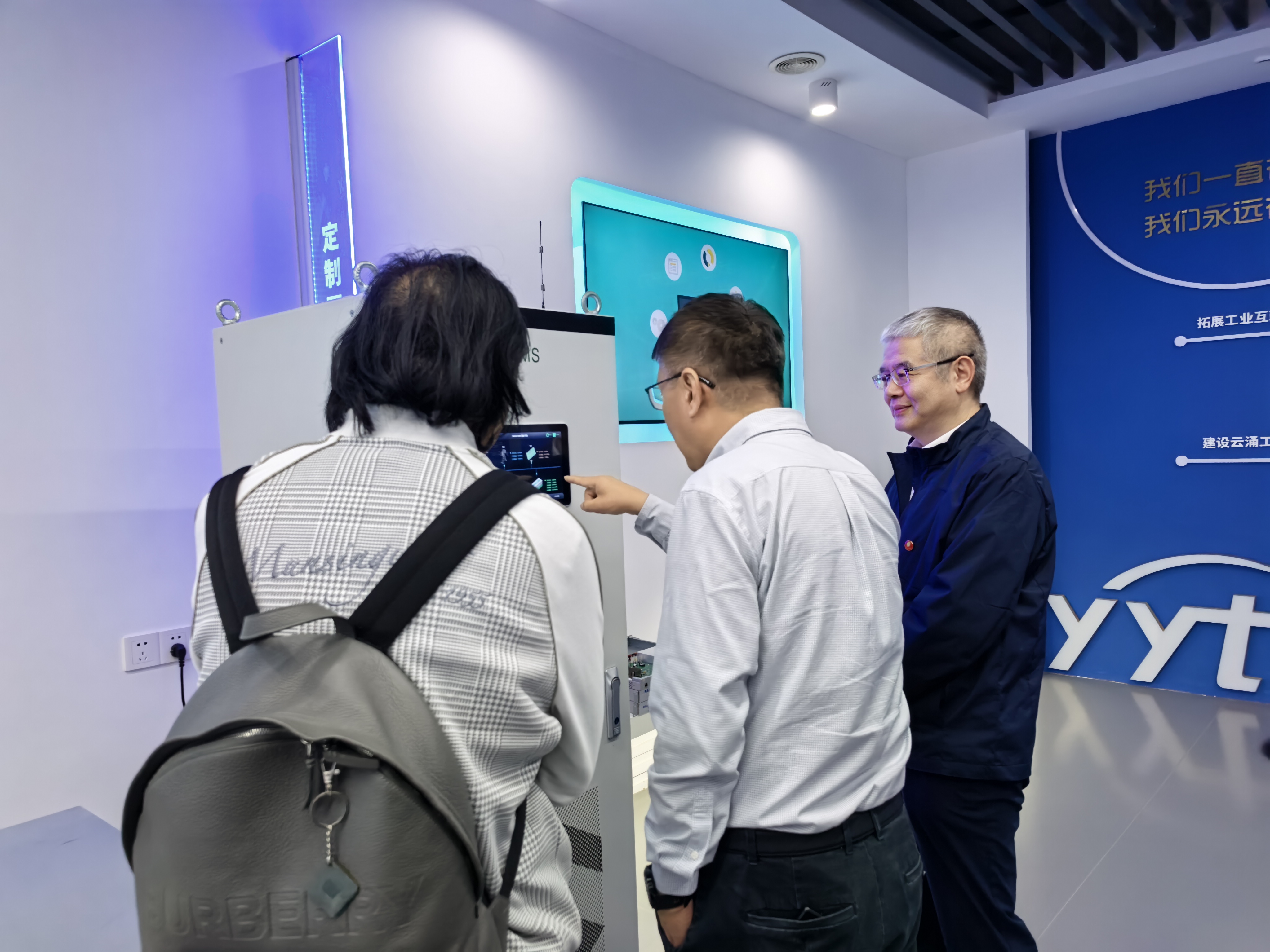 考察期间,胡伟武董事长一行先后走访了冰球突破展厅、实验验证中心及制造中心,实地察看智能料仓、SMT 贴片、DIP 插件、整机组装与成品测试等全流程生产环节。在制造中心,详细了解了公司的生产调度体系、质量管控标准及工厂信息化建设情况,对冰球突破在硬件制造领域的规范化管理与技术实力给予高度评价,尤其赞赏了公司在生产效率、质量把控及数字化转型方面取得的显著成效。