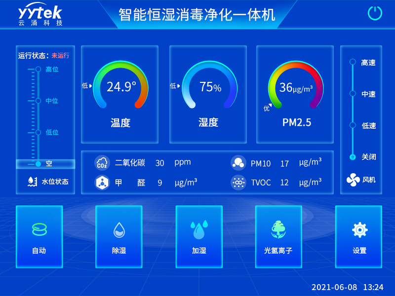 此外,冰球突破豪华版智能恒湿消毒净化一体机还具备智能化、人性化、直观化的运行方式及操作体验,运用微电脑智能控制技术,全中文液晶触控屏,功能模块化设计等,搭配远程监控系统,实时智慧感知分析预制故障;同时,设备自身配有大容量的内置双层水箱,实现双重防漏保护,结合配备的缺水、水满、溢水漏水报警系统,用户可通过人工加水和自动加水两种可选方式,使整个设备在使用过程中更加安全便捷。